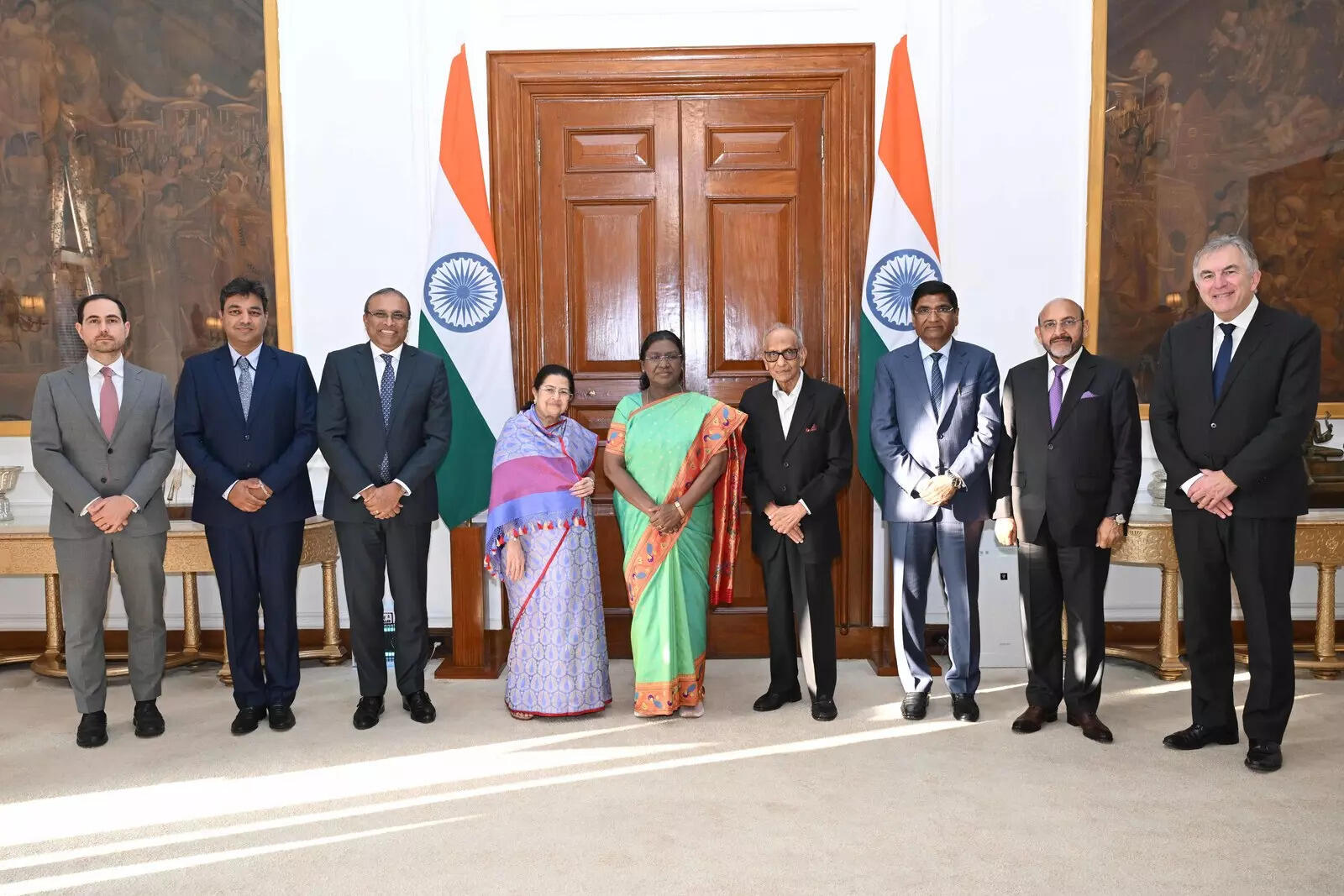 भारत, यूके और यूरोप के वरिष्ठ उद्योग जगत के नेताओं के एक प्रतिनिधिमंडल ने प्रस्तावित भारत-यूके/यूरोप ग्रीन कॉरिडोर, एक सीमा पार त्वरण मंच के लिए एक रोडमैप प्रस्तुत करने के लिए राष्ट्रपति भवन में राष्ट्रपति द्रौपदी मुर्मू से मुलाकात की। औद्योगिक डीकार्बोनाइजेशन और टिकाऊ व्यापार.